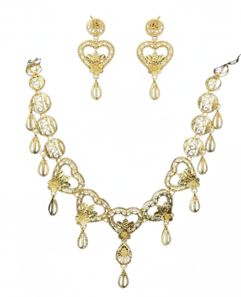 Exquisite royal gold statement necklace featuring intricate traditional patterns. Perfect for weddings and special occasions with its majestic design.
